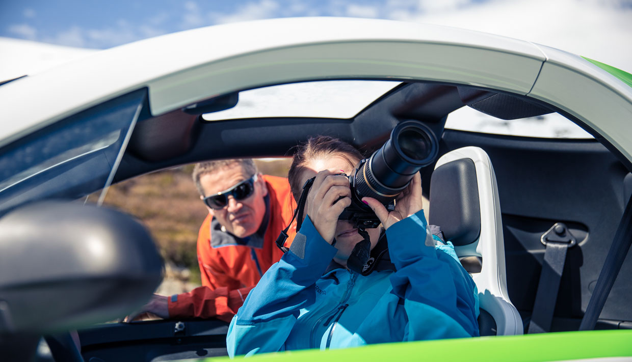 Opplev Geiranger og verdsarvområdet på eiga hand og i eige tempo i ein sprek, liten elbil frå eMobility. GPS-systemet guidar deg rundt på ulike spennande turar og garanterer ei humørfylt oppleving!