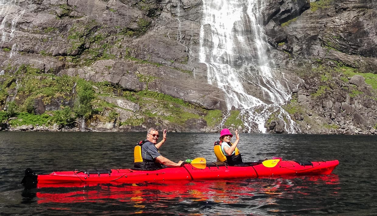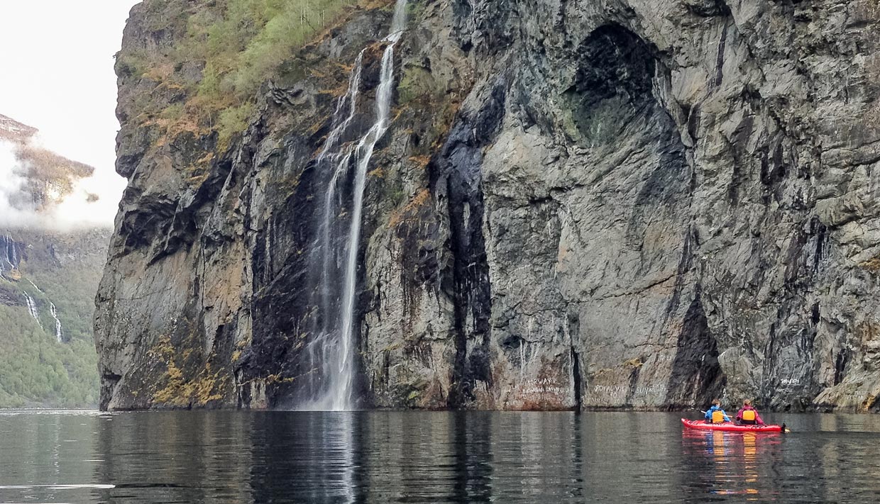 Utforsk Geirangerfjorden i kajakk og kom tett på den verdenskjente fjorden med de flotte fossefallene — en fin mulighet for deg som har litt kajakkerfaring og som vil utforske fjorden på egen hånd.